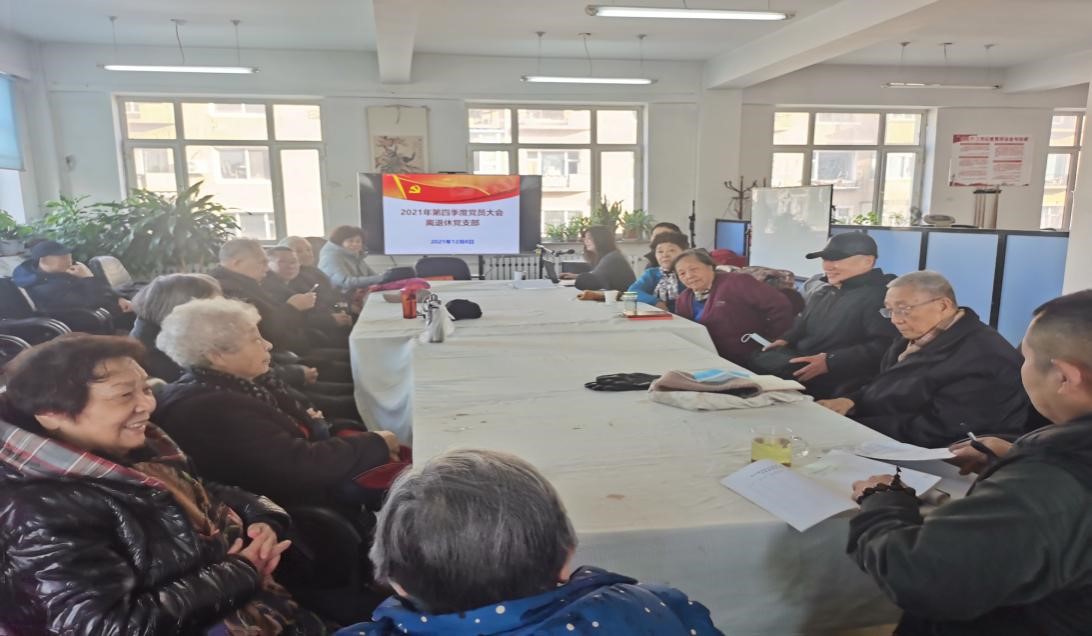 2021年12月8日上午,离退休党总支在离退休活动室召开第四季度支部党员大会学习党的十九届六中全会精神。离退休党支部32名党员参加了本次会议,会议由党总支书记王玉荣主持。