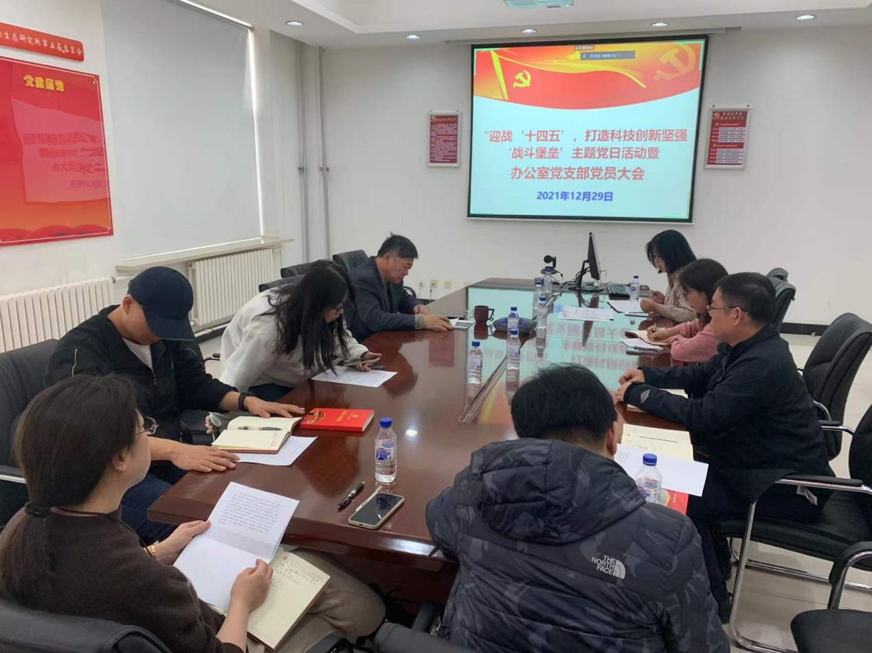 12月29日,办公室党支部召开支部党员大会,开展“迎战‘十四五’,打造科技创新坚强战斗堡垒”主题党日活动,支部10余名党员参会,会议由支部副书记毛之夏主持。