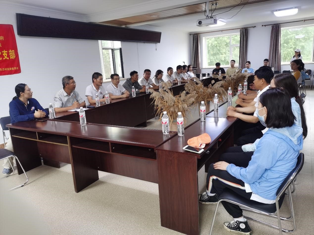 黄迎新、王明明、李晓峰、赵丹丹、李强、薛坤、刘宏远等同志分别从旱田风沙土改良技术及双季双优模式、水田良田良种良法三位一体高效治理模式、多要素立体监测与模式应用评价、盐碱草地生产力提升与生态屏障构建模式和湿地资源合理利用与生态功能提升模式等领域,分别向苇场党支部党员介绍了相关技术的优势和应用情况。随后湿地模式技术负责人文波龙表示东北地理所科技团队与苇场有20年的合作基础,临时党支部的建立及支部共建活动方式升华了双方的合作机制,特别是加强了党对科技工作的领导,为双方的同心协力、促进生态保护和经济发展提供了根本保障;并提出大安市未来建设牛心套保生态经济示范区,将会进一步加大与水田、旱田及草地和遥感等技术模式的对接融合;同时建议科研人员和研究生,要将科学研究与生产实际、国民经济和生态建设相结合,需求牵引,将论文写在大地上。