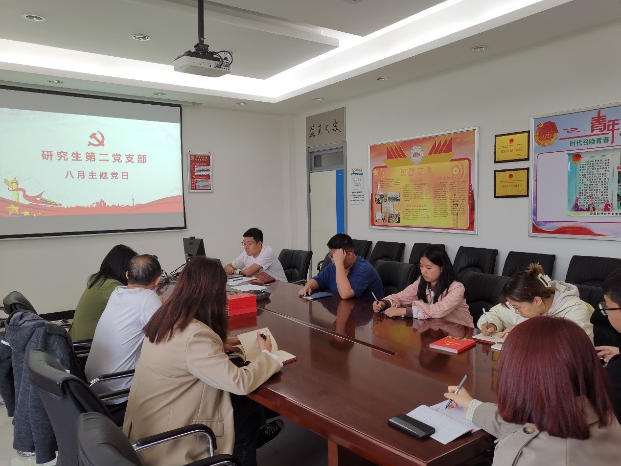 8月26日,研究生第二党支部在综合楼四楼416会议室召开8月主题党日活动。支部书记杨奇峰主持会议。