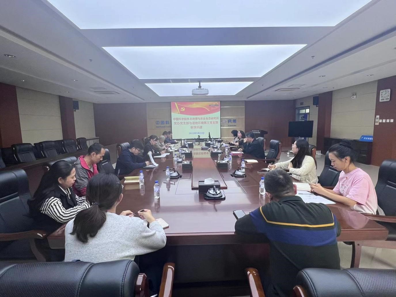 会上,湿地环境第二党支部任志彬领学了《关于新时代进一步加强科学技术普及工作的意见》,党办党支部王晓慧领学中国科学院党组2022年夏季扩大会议精神。