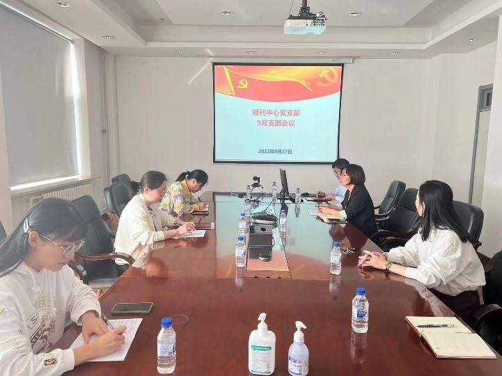 2022年9月27日上午,期刊中心党支部在综合楼五楼会议室522召开九月份支部大会,会议由宣传委员张春丽主持。