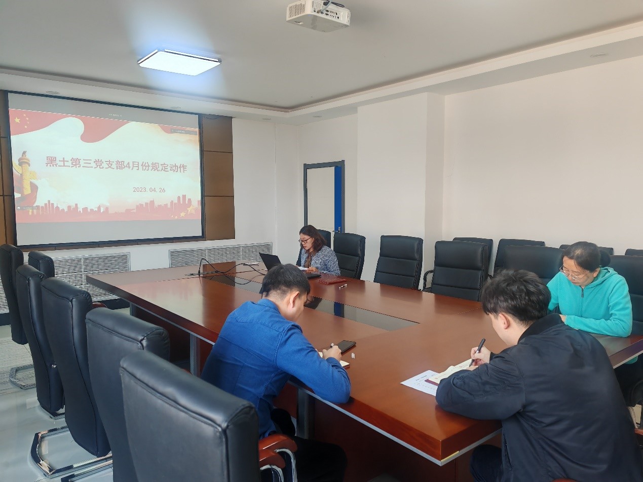 4月26日,黑土第三党支部开展学习贯彻习近平新时代中国特色社会主义思想主题教育集中学习,会议由支部书记邹文秀主持。支部党员通过线上和线下结合的方式参加了会议。