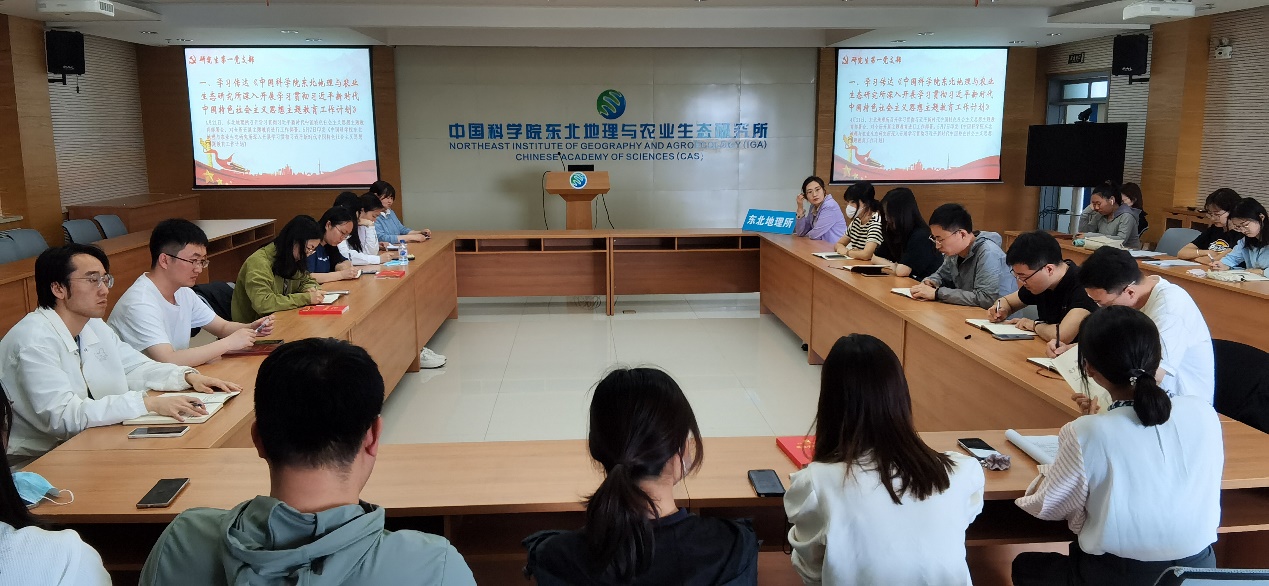 首先,李盟向大家传达了《中国科学院东北地理与农业生态研究所深入开展学习贯彻习近平新时代中国特色社会主义思想主题教育工作计划》。随后,与会党员分篇章原原本本、逐段逐句学习了《习近平关于调查研究论述摘编》主要内容,与会党员深刻认识到大兴调查研究的重要意义,并围绕本次集中学习内容交流了心得体会。