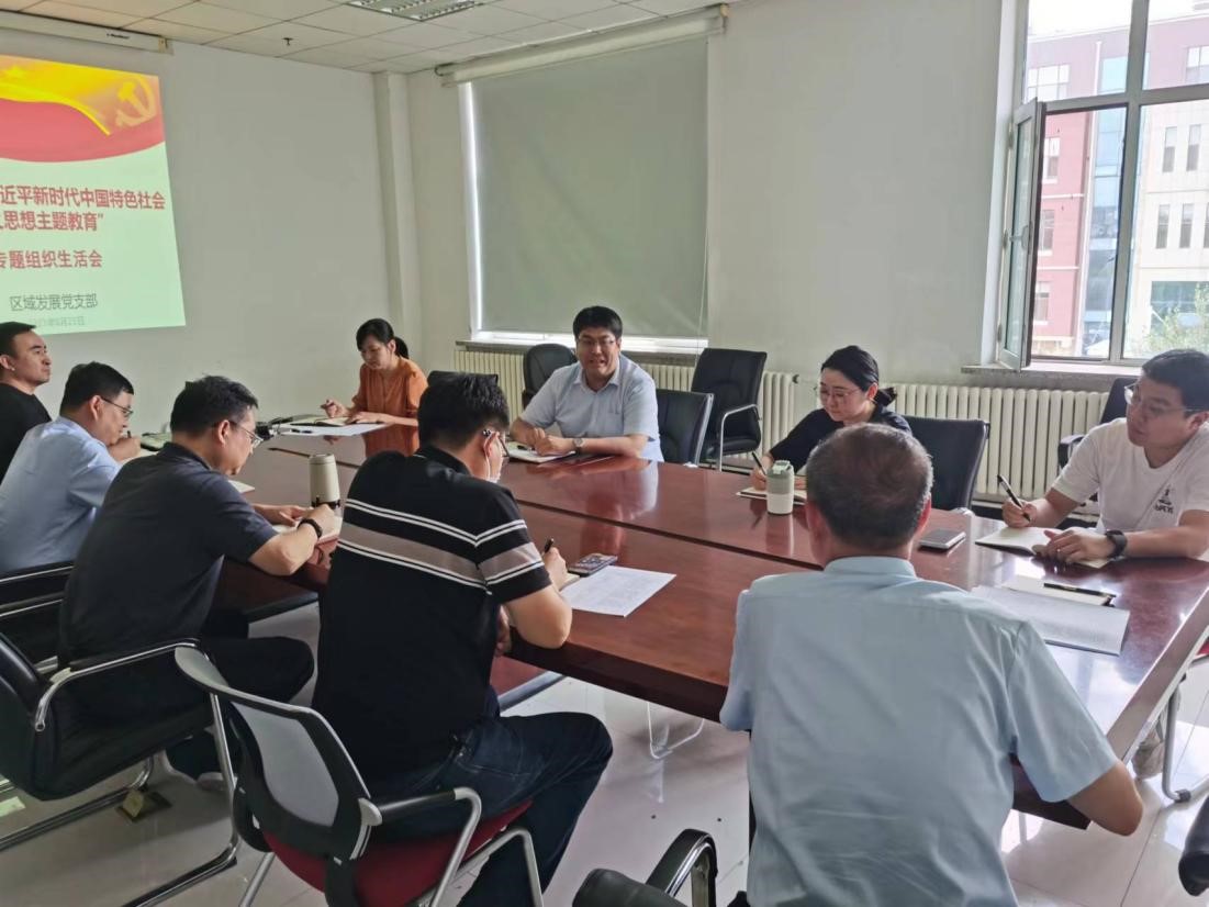 8月25日,区域发展党支部在综合楼三楼会议室召开学习贯彻习近平新时代中国特色社会主义思想主题教育专题组织生活会,会议由支部书记李鹤主持,纪委书记项尚到会指导,全体支部党员参会。