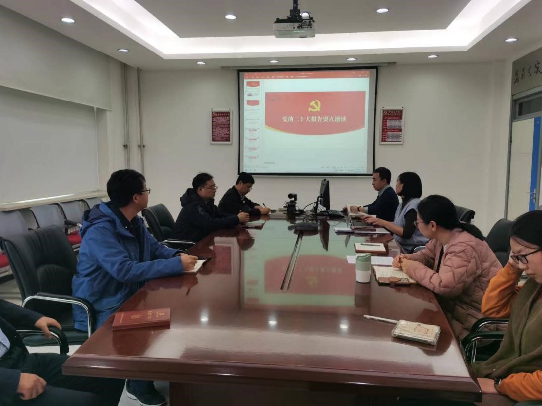 10月26日下午,区域发展党支部在综合楼四楼党员活动室开展题为“学习党的二十大精神”的主题党日活动以及“学习《习近平生态文明思想学习纲要》”的党课,活动由支部书记李鹤主持,支部全体党员参加。