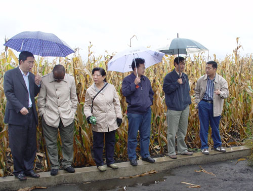在海伦站,何所长冒雨查看了农业试验田以及野外科研观测设施,了解了水、土、气、生等长期定位实验工作进展,同时听取了站长韩晓增研究员的全面工作汇报。何所长充分肯定了海伦站监测、研究和示范工作取得的成绩,鼓励海伦站要进一步加强组织和管理,切实提高科研水平,争取国家和省级重大科研奖项。何所长还对正忙于秋收的有关工作人员表示了关切和慰问。
