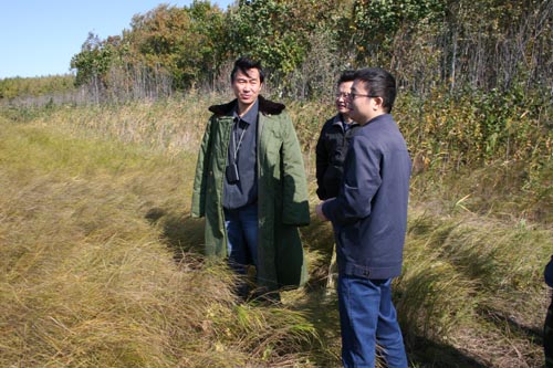 当来到三江站时,这里已是寒气逼人。何所长参观了核心实验场和附属实验场,考察了洪河自然保护区,并简要地听取了站长宋长春研究员的工作汇报。何所长对三江站在湿地研究中的战略地位以及发挥的重要平台作用给予了肯定,并特别关注三江站的基础设施建设状况,表示要通过各方努力积极争取改善三江站工作和生活条件。